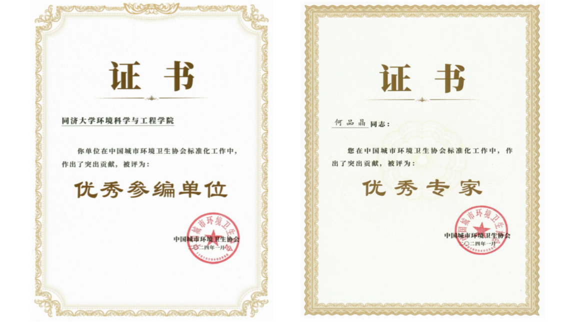 Professor He Pinjing's team has been the chief editor of the multiple group standards issued by the China Urban Environmental Health Association. These standards include "Design Standards for Odorous Gas Collection in Domestic Waste Treatment Facilities" (T/HW 00057-2023), "Emergency Operation Standards for Waste Incineration Plants during Major Epidemics (Trial)" (T/HW 00022-2021), "Standards for Waste Disposal and Collection Operations during Major Epidemics (Trial)" (T/HW 00023-2021), among others. In addition, they organized relevant units from the Village Waste Management Professional Committee to develop the village waste management standards. Their contributions have greatly contributed to the development and improvement of China's environmental health industry’s technical standards.