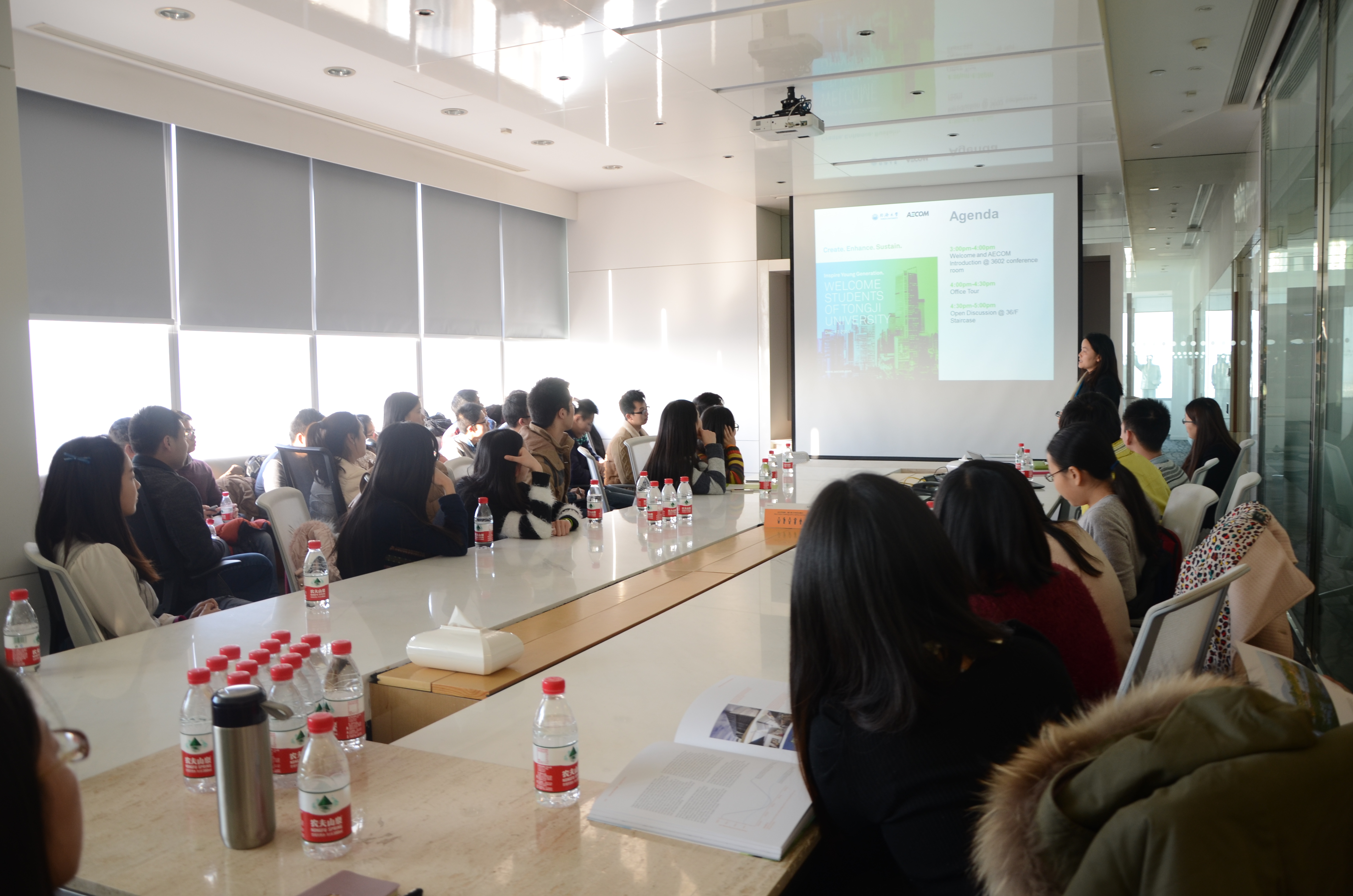 此次活动的参观地点位于上海市静安区会德丰国际广场,由AECOM公司EHS高级经理、williamhill官网校友胡丽娟女士接待同学并引至主会议室。由于圣诞临近,公司经过精心布置使会场充满了节日热闹温馨的气息。此外,公司还特地准备了标有AECOM的小礼品赠送给大家。经过简短的欢迎仪式后,胡丽娟女士对AECOM公司的发展历史、公司规模、战略目标、部门职能等做了简短叙述,并播放了AECOM公司的宣传视频,随后由市场部和人事部经理分别向大家介绍了AECOM公司的经典项目案例及实习、招聘等方面的要求。在此期间,各位经理通过趣味问答、礼品赠送等形式,几度把现场气氛推向高潮。对AECOM有了初步了解后,同学们在各位经理的带领下分专业领域参观了公司对应的办公区域,在参观过程中,又和各部门领导就部门职能及技术应用等问题进行探讨交流,面对同学们最为关心的公司实习机会、就职要求等问题,各位经理及工程师们均耐心详细地进行了解答。在参观尾声,胡丽娟女士代表AECOM公司向各学院图书馆赠送了珍贵书籍,希望同学们可以接触到最新的技术发展,而三个学院也为AECOM赠上了一套带有同济特色的纪念品用于此次参观的留念。