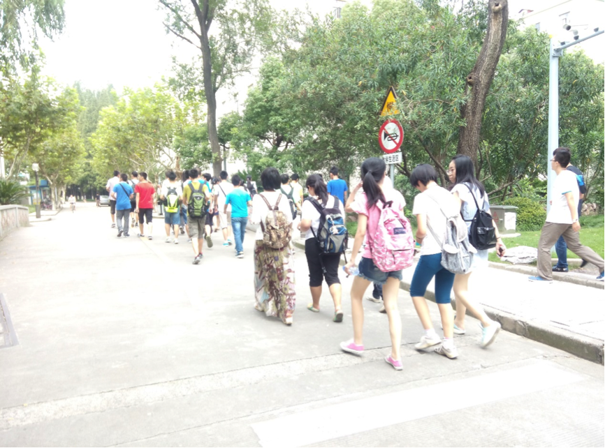 2014年9月7日,报到第二天,为了能让这些新生尽快地融入大学生活,环境学院贴心地安排了6位学长学姐带领他们参观校园。本次参观分为院内参观和校园参观两个部分。院内参观中,学长学姐为新生们简要介绍了环境学院的历史,并带领新生了解了各个系所、重点实验室等分布,并重点参观了院史馆。在新近落成的院史馆里,新生从挂满展示墙的奖状与照片中,了解了学院的发展、荣誉与科研成果,生发出了对于学院的第一份归属感。