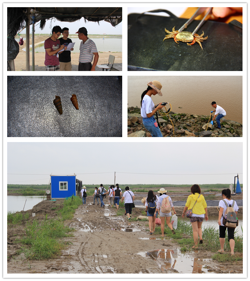 杭州湾国家湿地公园是实习的第一站,它位于浙江慈溪境内,是东亚最大的咸水海滩湿地之一。同学们一行参观了湿地候鸟博物馆,观看了6D电影《迁徙之旅》;在赏乌篷樵风、品长廊缦回之余,大家对慈溪的近海环境保护现状有了初步认识。在慈溪环境和渔业监测站的陈汉春站长的介绍帮助下,同学们全面认识了杭州湾的地理概况、地质条件、环境成因、围垦历史和产业前景,第一次接触了“滩涂”“围垦”“淤涨”“流塑”等名词,这为下一步的渔业环境监测工作奠定了基础。