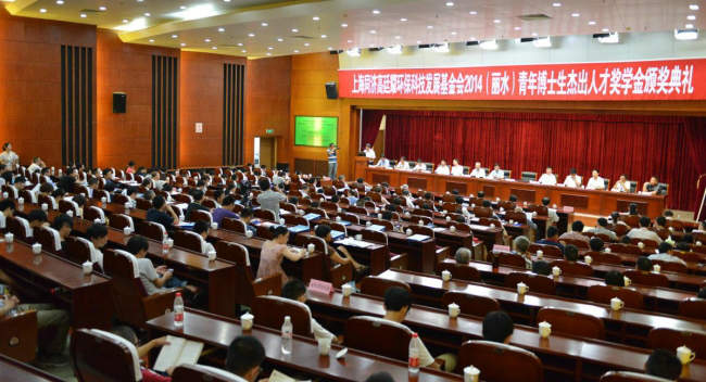 “青年博士生杰出人才奖学金”1至6届颁奖典礼在上海举行,2010年第7届开始走出上海。丽水也是继江苏盐城、山东曲阜、江苏宜兴、浙江桐庐之后第五个承办颁奖典礼的环保产业发展特色城市。在上海之外举办颁奖典礼,很好地促进了博士生对环保产业发展实际的关注,也进一步推动了学校与地方经济社会发展实际的密切联系与合作。2014年颁奖典礼举办期间,还举办了历史文化名城保护与规划、水环境治理现状与展望两场专题报告和污泥干化—焚烧技术研讨会。