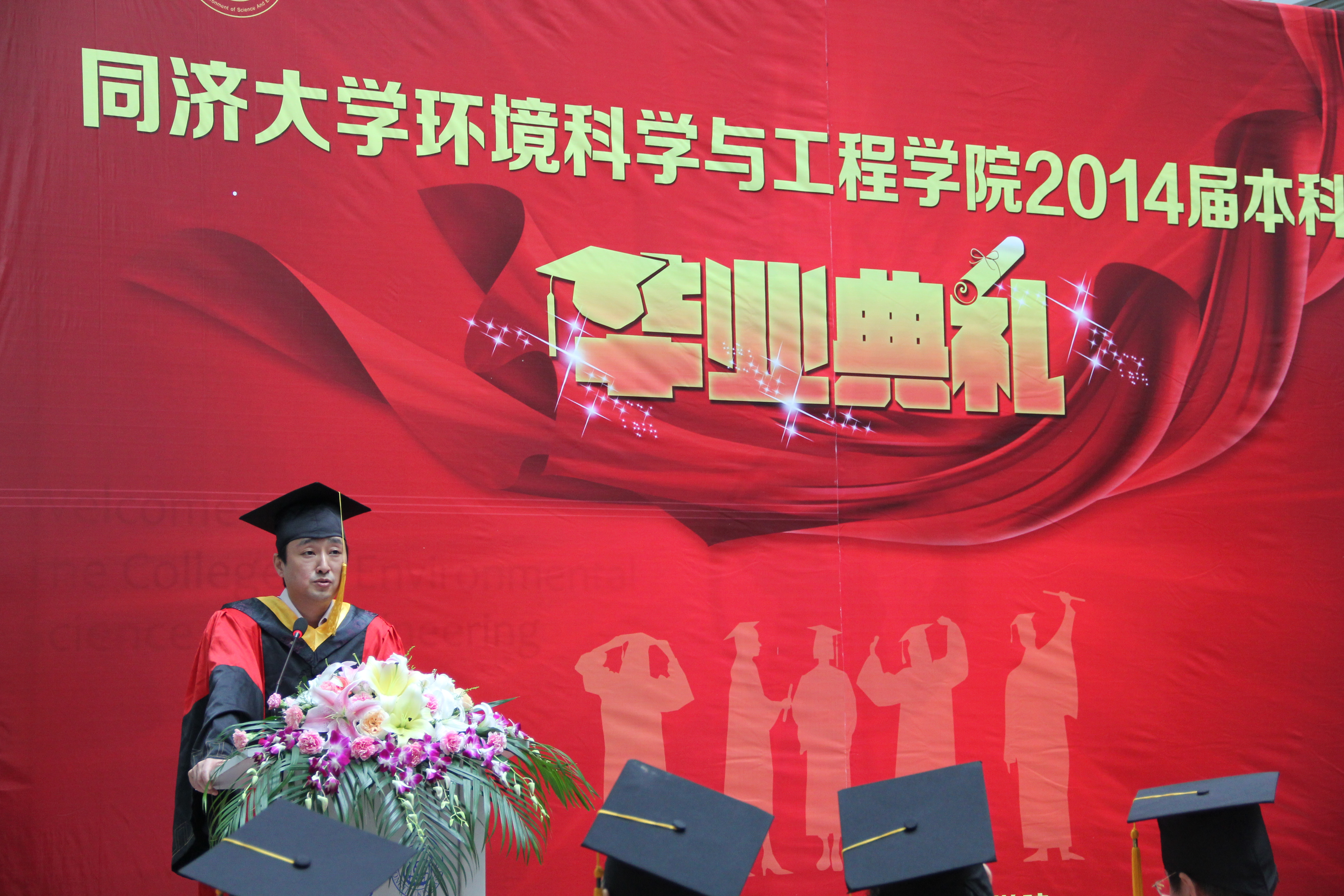 我院导师代表赵建夫教授向毕业生们临别寄语,回顾这四年与导师的交流学习,同学们难掩心中的感激。毕业生代表——2010级环境工程专业武博然发言,表达对母校、对老师们的感激之情,也坚定了新一代同济人即将担当社会责任的决心。四载光阴,威廉希尔足球网又为社会哺育了一批敢于创新、勇于担当、坚定梦想与信念的有为青年,他们将散落在祖国和世界的各个角落,为国家建设和社会进步尽自己的一份力。徐竟成教授及三个专业的班主任宣布了2014届毕业生校友联络人名单并为他们颁发了聘书,希望毕业生们互相保持联系,铭记母校之恩。一朝为学子,一生同济人。