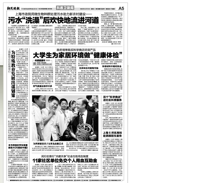 空气质量检测活动曾经以大篇幅刊登在新民晚报,上海科技报上,并接受了上海市杨浦区电视台的采访,也在网络上引起的广泛地专注。图1为新民晚报报道的截图。图2为杨浦时报大篇幅报道截图。