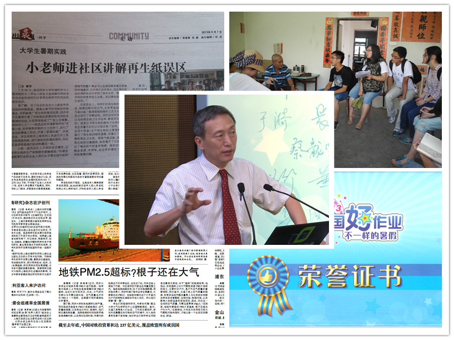 其中,“世上无难事,纸怕有心人——纸质资源回收利用及再生纸使用情况调查与研究”团队获得“中国好作业”全国十项金奖之一,裴钢校长作为出题导师亲自指导实践应用,调研成果被中新网、凤凰网、微同济、四平报等多家新闻媒体报道;“净化地铁空气,创造绿色出行——上海地铁车厢PM2.5空气净化器的设计与推广”团队关注时兴的“PM2.5”,充分体现了环境学子的社会责任感,该组的调研报告被新闻晨报、解放日报、腾讯网等众多媒体报道;“韩风临申城,环保进厨房——中韩厨余垃圾回收模式的对比研究”团队实现了跨国界、跨国籍,我院韩国留学生与中国学生一起跨越两个国家的实践成果在文汇报、上海科技报等多家报纸刊登……
