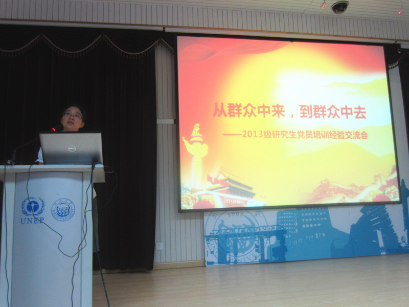 最后,学工办主任贺贝贝老师围绕即将开始的“2013级研究生新生党员培训班”做了培训班发展情况的介绍,使党员同学明确了新生党员培训班开班的背景、形式以及成果。