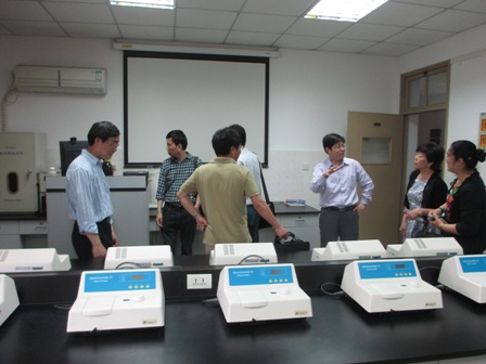 我院实验教学中心副主任施鼎方老师首先对实验教学中心的基本情况进行了介绍,之后一行人等先后到我院水处理实验室、国家重点实验室、大气污染控制实验室以及环境微生物实验室等进行了参观,并与授课教师进行了讨论。在交流环节中,我院实验教学中心主任徐竟成教授首先对实验教学中心建设的经验体会与来访的老师进行了交流,刘勇弟教授对我院实验教学中心热情接待表示了感谢,之后双方就实验室建设、实验项目的研发以及特色保持等问题进行了热烈的讨论和交流。