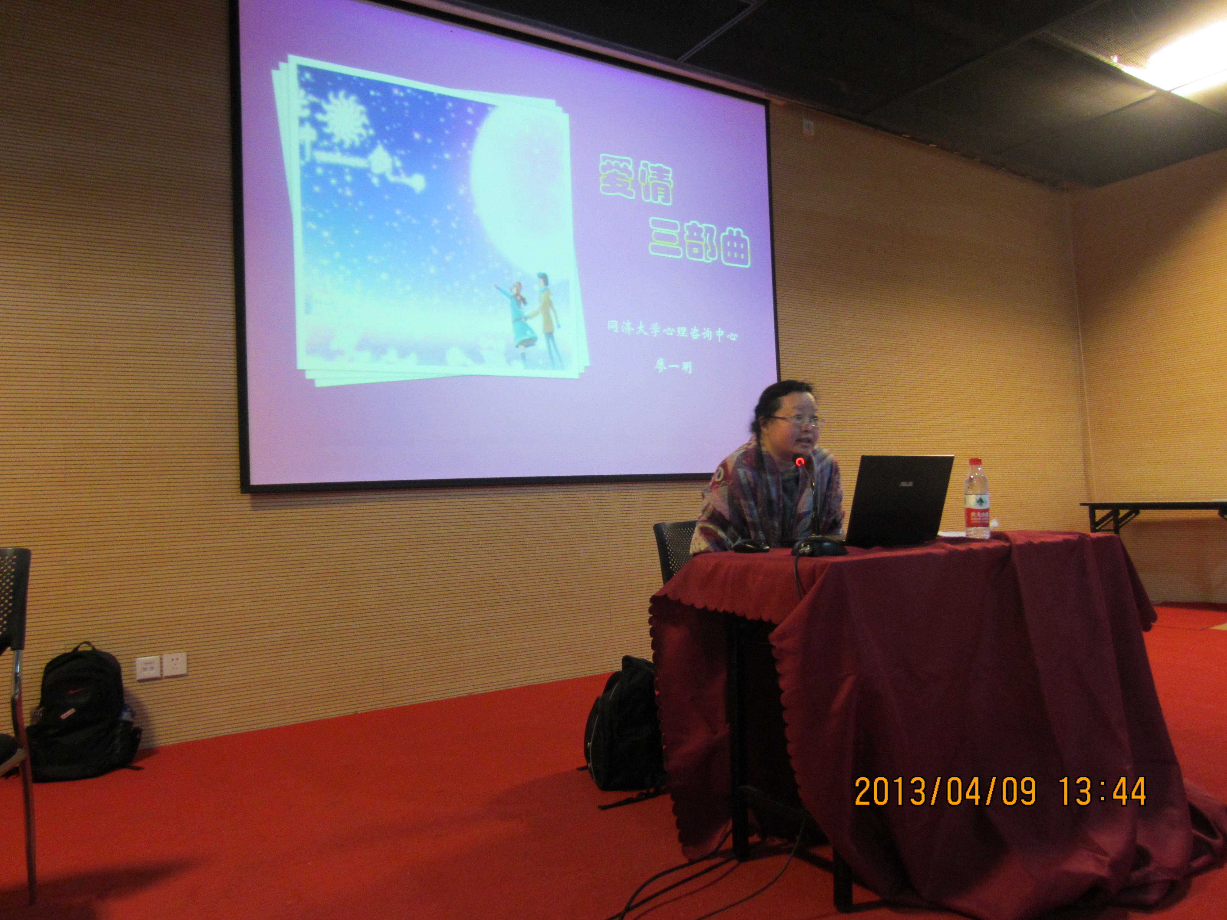 4月9日下午,我院在经纬楼三楼演讲厅举行心理健康教育之“爱情三部曲”大学生情感专题讲座,由心理健康与咨询中心的资深专职心理咨询师廖一明老师主讲,我院2012级全体同学、班主任以及高年级的学生骨干聆听了这场精彩的讲座。