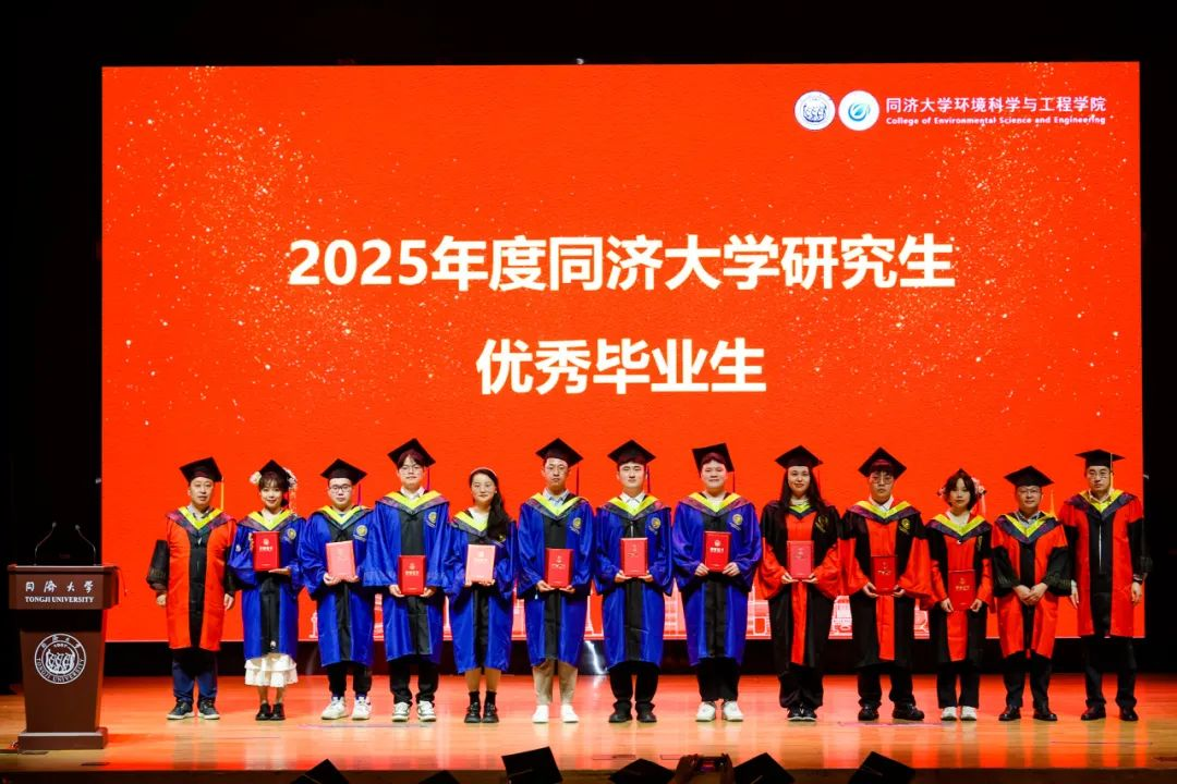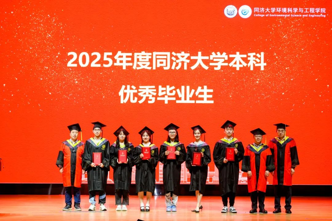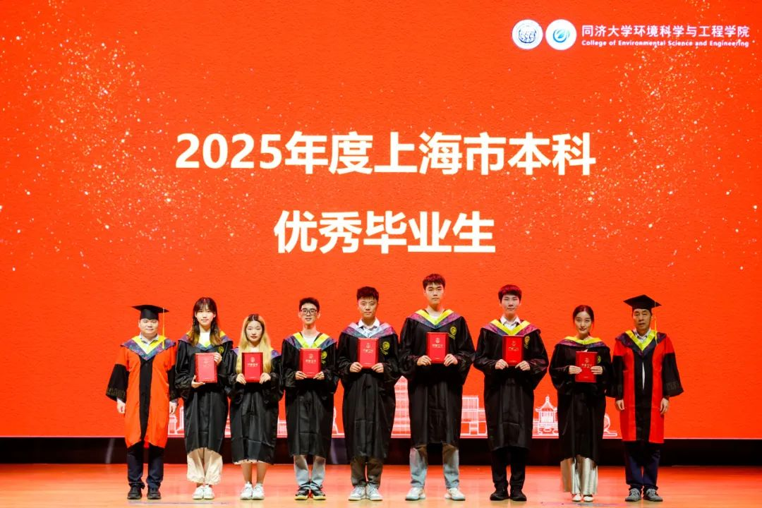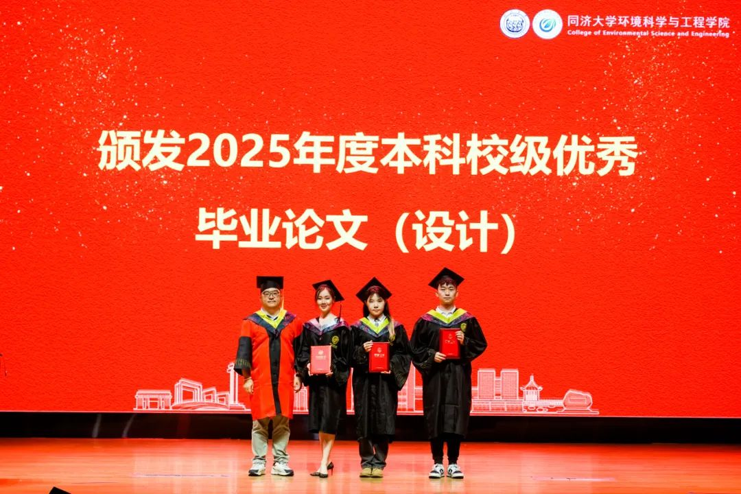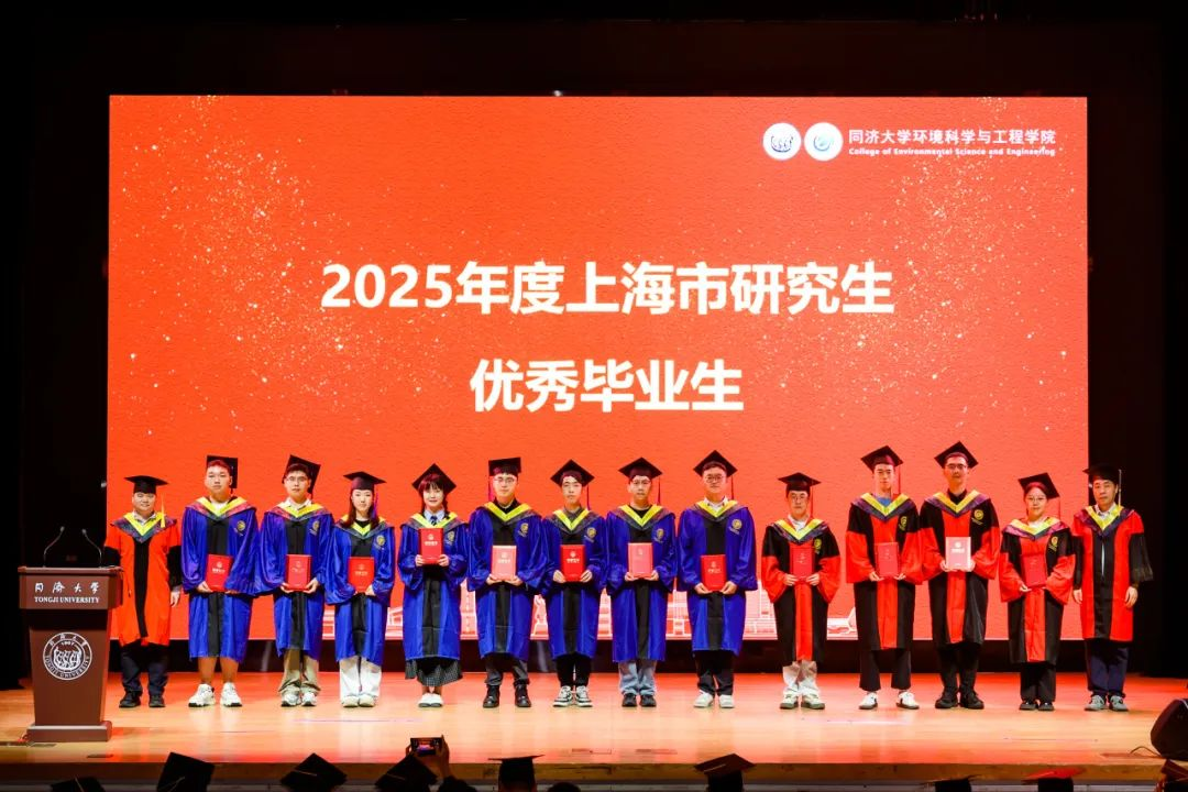 随后,党委副书记陆丽君宣读2025届市级及校级优秀毕业生名单,党委书记徐斌、党委副书记周上玖为上海市研究生和本科优秀毕业生颁发证书,市政工程系系主任夏圣骥、环境工程系党支部书记尹海龙、环境科学系党支部书记孟祥周为williamhill官网研究生和本科优秀毕业生颁发证书。