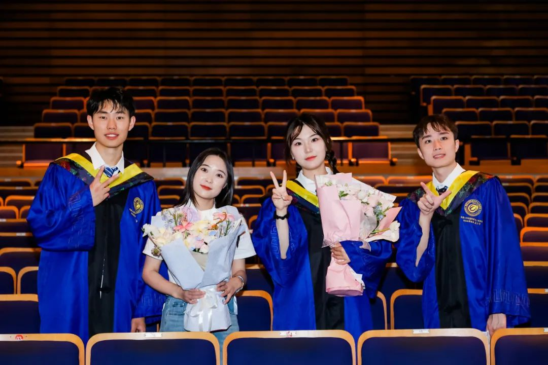 毕业生代表上台为学院教师代表献上鲜花,表达感恩与敬意。老师们也依次为毕业生们送上情真意切的嘱托与祝福。