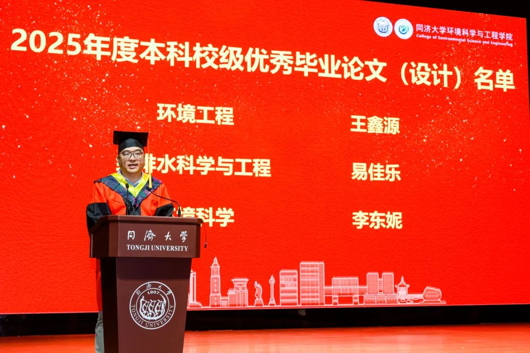 典礼伊始,我院院长王志伟教授致辞。王院长首先代表学院对毕业生们顺利完成学业致以衷心的祝贺,并向各位悉心指导的老师们、始终默默支持的家人、朋友表示真诚的感谢与敬意!回望来路,他强调同学们以专业学识、创新精神和实践担当书写了成长篇章。面向未来,他勉励毕业生做胸怀天下的追梦人、久久为功的坚守者、跨界创新的开拓者及知行合一的实践者。他嘱托学子永葆“同济环境人”的使命担当,激励同学们“风雨兼程不忘初心,纷繁世界中保持定力,时代变革中永立潮头”!