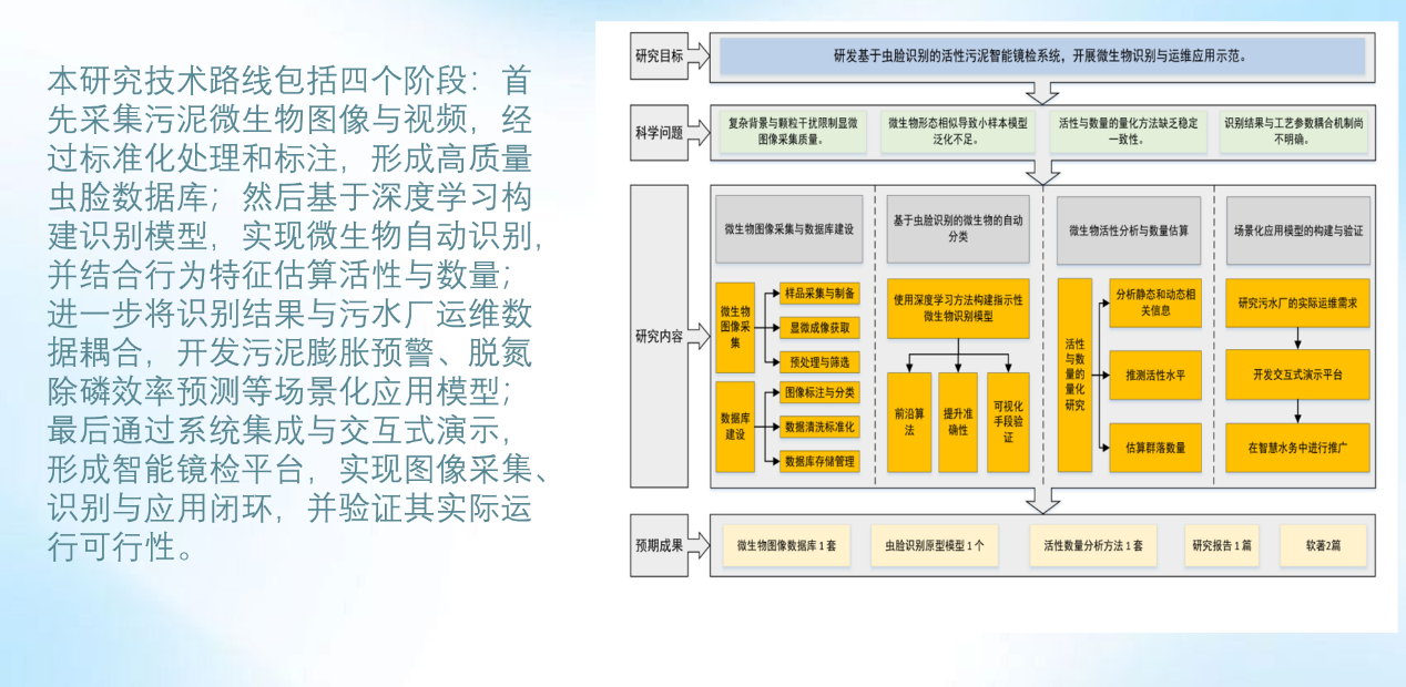 由我院环境工程专业本科生武姿瑞、郭骞、给水排水科学与工程专业本科生万千千、化学专业本科生石培辰、环境工程(数学与应用数学双学位)专业本科生马诚骏、环境工程专业硕士生杨浩生、王星博和环境工程专业博士生李惠平组成的 “同济智水AI团队”以“微生物感知、智能识别、场景应用、绿色发展”为理念,基于标准化图像采集与数据库建设、深度学习驱动的虫脸识别模型、活性与数量综合表征方法以及场景化应用模型开发等系统创新,设计了一套基于“虫脸识别”的活性污泥微生物智能镜检系统,实现对污泥典型微生物的高精度自动分类,并在污泥膨胀早期预警等应用场景中展现出良好的实用价值。