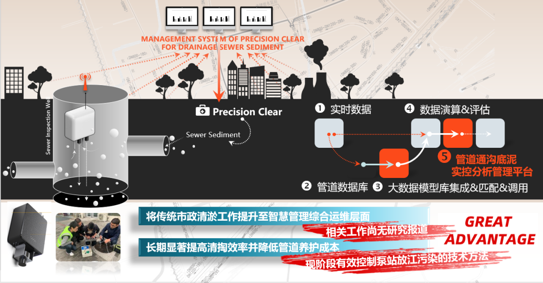 作品简介:针对我国城镇排水系统错混接严重导致污染物雨天直排引发河道水体出现黑臭反复的问题,本作品首次提出符合当前形势的“水量不能减少但可以降低污染物浓度”的控污新思路,基于前期研究中通沟底泥碳排放行为和碳素气体产排机理的两大理论发现,首次创新性对应研发了一种城市排水管道高有机底泥的精准定位技术,研制出相应的在线监测设备,通过建立的碳素气体产排动力学模型和通沟底泥有机物含量反演模型(模型精度高达94%),实现了高有机含量通沟底泥的精准化、智慧化定位,进而对其清掏以实现雨天入河污染物的有效削减,是目前削减排水系统雨天入河污染的有效技术手段。作品首提的控污理念、研发的定位技术和在线监测设备,目前正在全国推广应用。