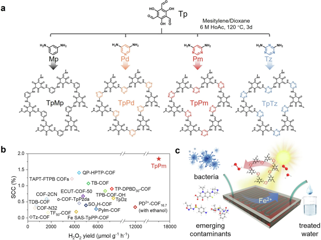 图1. Tp-COFs的合成及其高效H2O2生成性能。
