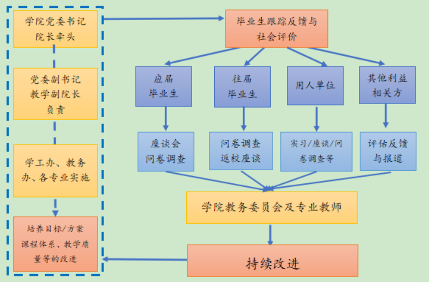 建立健全毕业生质量跟踪调查与社会评价方案,是实现我院教育教学改革和持续改进的必然要求。毕业生的质量不仅关系到我院的教学质量、信誉和知名度,更重要的是关系到我院人才培养质量是否满足国家、社会和用人单位的需求。