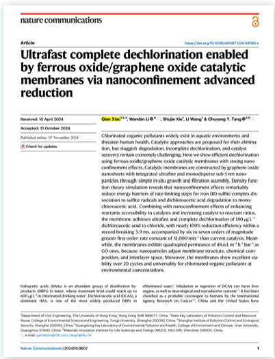 肖倩,本科毕业于重庆大学给排水科学与工程,博士毕业于williamhill官网市政工程。博士期间,经国家留基委资助赴美国莱斯大学土木与环境工程联合培养。毕业后,在香港大学土木工程从事博士后研究。于2025年加入威廉希尔足球网。长期从事高级还原水处理技术的研究工作,主要关注水体污染物深度去除机制、水处理材料设计与优化、水处理过程物质循环利用技术以及智慧水处理。作为核心成员,主研并参与了多项国际国内重要科研项目,包括香港特别行政区研究资助局(RGC)项目、美国自然科学基金(NSF)项目、美国能源部(DOE)项目和国家重大专项计划等。已发表学术论文20篇(中科院一区SCI论文17篇;唯一一作/通讯14篇,累计影响因子151),包括1篇一作Nat. Commun.、3篇环境领域国际顶刊Environ. Sci. Technol.及Water Res.(均为一作);累计参加学术会议13场,作报告11场;参与组织了多场国内外学术会议,并担任会议秘书;累计获得学术奖励14项,比如入选上海市领军人才(海外)青年;担任北美华人环境工程与科学教授学会(CAPEES)编辑与会员、国际学术期刊Green Energy and Resources与《净水技术》青年编委等。